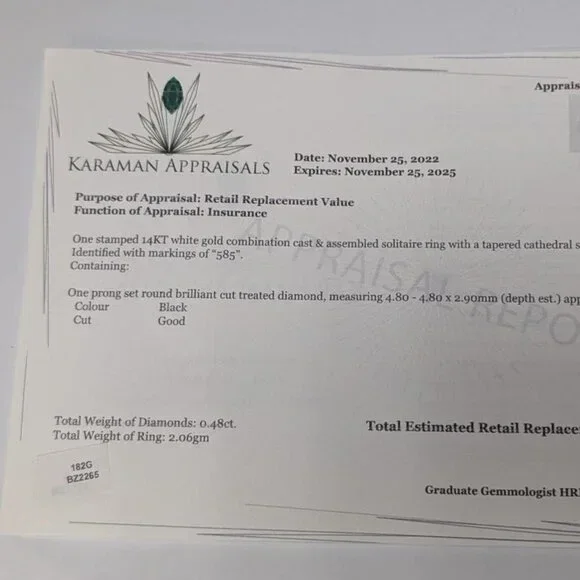 14K White Gold 2.06G Black Diamond 0.48Ct Ring Made in Canada Appraised Retail $1450 Appraisal attached