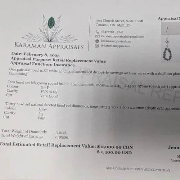 10K White Gold 0.95G Natural Black And Gray Diamond 3.01Ct Earrings, Made in Canada, Appraised Retail $2000 Stunning pair. Has appraisal.