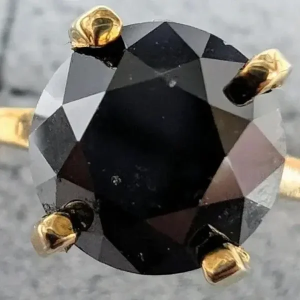Note scratches on diamond. 10K Yellow Gold 2.32G Black Diamond Treated 1.5Ct Ring (~Size 6)(), Made in Canada, Appraised Retail $2480