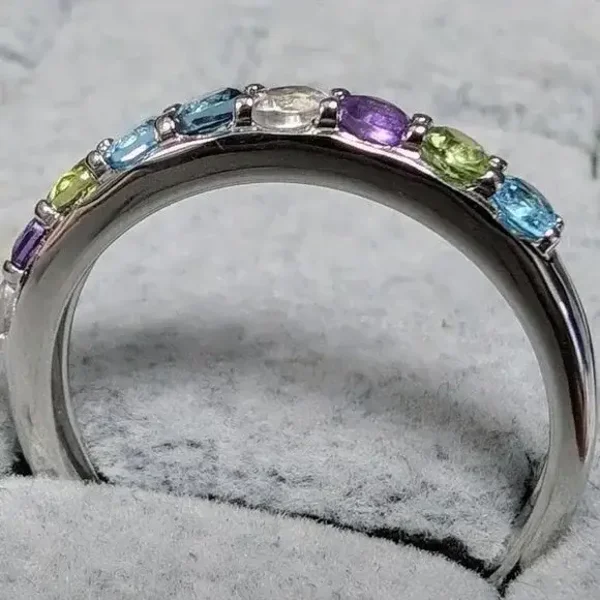 Silver Genuine Gemstone Ring Purple, green, blue, clear. Look for watching pieces.